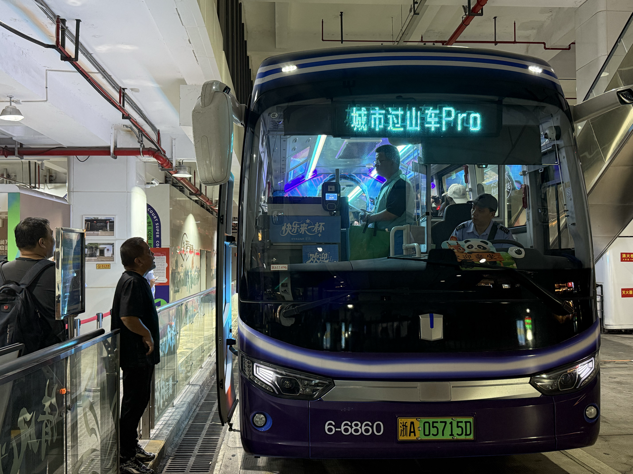 10月3日傍晚6时30分,距离发车还有半小时,记者已经在龙翔桥公交站遇见了赶来的游客。从广州慕名来的游客章斓,正拿着相机录制Vlog:“都说杭州夜晚很美,逛了一天走不动路了,坐巴士快速欣赏下夜景也挺不错。”还有不少亲子家庭组团赶来,在杭州工作8年的程帆特地带着女儿和父母一起体验:“我朋友说这个巴士很刺激,刚好爸妈国庆来看我,就带他们来试试。”