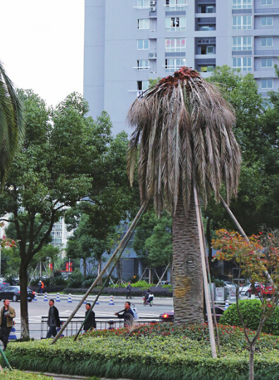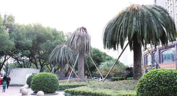 然而近几年来,时不时会听说市区某些地方的棕榈科植物突然出现死亡的消息。而就在近期,市区万川锦苑广场上价值一百万元左右的五棵加拿利海枣也接二连三地出现了死亡,如今差不多已“全军覆没”。这些树为何会突然遭遇死亡?它们在温州的命运如何?记者对此进行了调查。