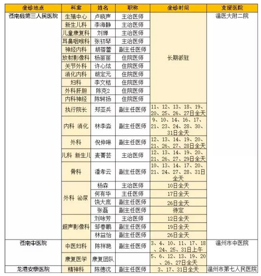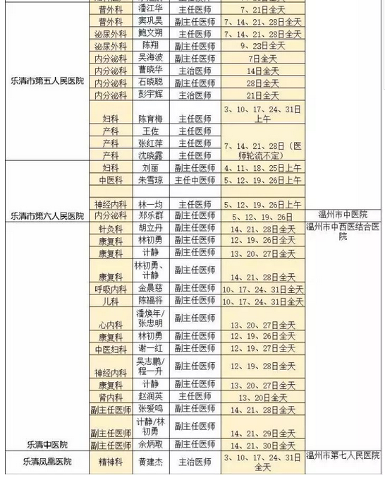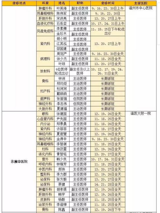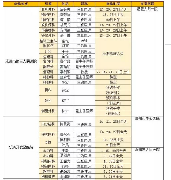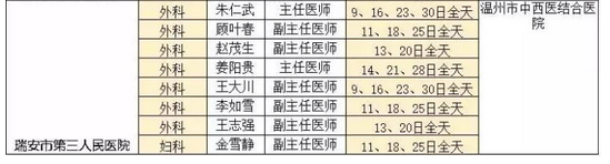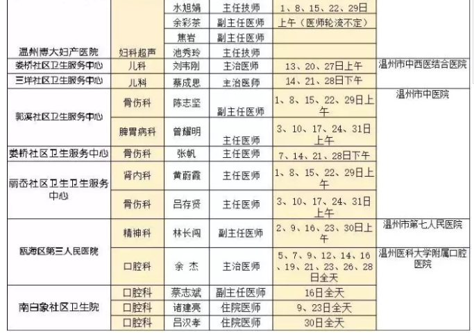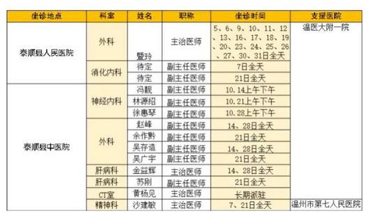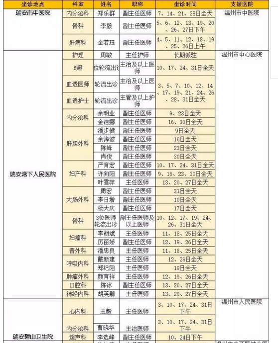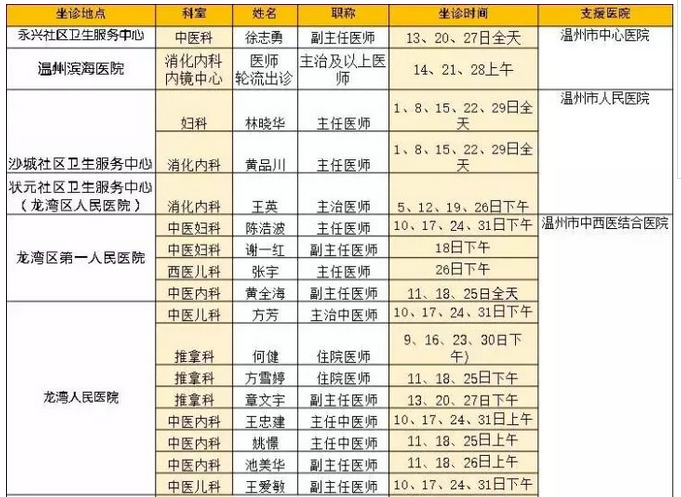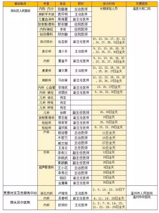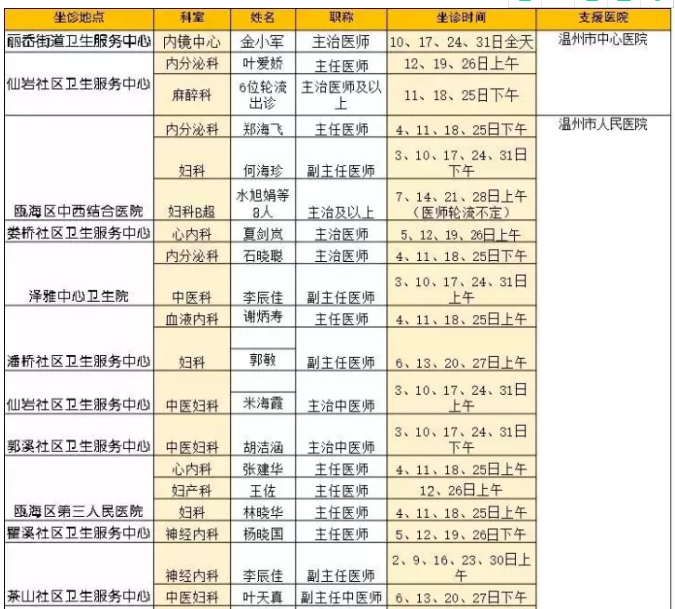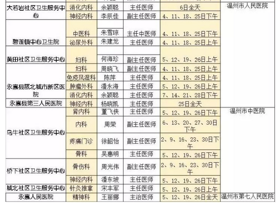 温州网讯 市卫生计生委实施“双下沉,两提升”项目,选派高职称医生到基层坐诊,10月都有哪些专家?快来找找看吧!