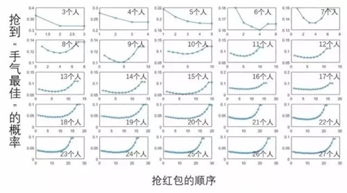 通常抢红包的人比较多的时候,应该是越往后抢到手气最佳的概率越大。