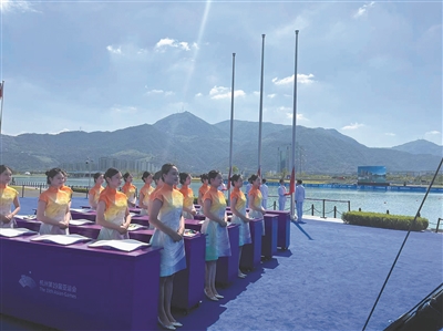 朱一夫和江峰均告诉记者,夏天顶着高温训练三个月,只为三天比赛万无一失。“虽然很辛苦,但是能以升旗手的身份参与到杭州亚运会中,我感到很自豪,一切辛苦都是值得的。”