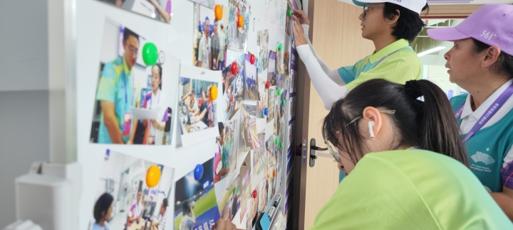 这些照片,被单晓叶第一时间冲洗出来,贴到标注“精彩亚运,有你有我”的白板上,供记者自取:有扛着长枪短炮忘我拍摄的画面;有聚精会神争分夺秒赶稿子的画面;有与同事热烈商讨选题的画面……比赛期间,温州体育中心体育场累计接待国内外记者184人次,几乎人人都收获了“惊喜”,很多人收获了不止一份“惊喜”。“没想到还有媒体工作照,这体现了场馆工作人员和志愿者细致周到的服务。”新华社记者魏一骏表示。