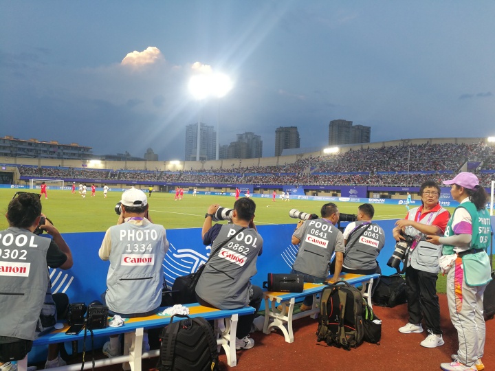 亚运会足球赛事正式开打后,单晓叶成为一名场内摄影主管。她每天早早等候在媒体工作区,按照亚组委的要求,提醒记者有关注意事项,引导摄影记者到固定区域拍摄。