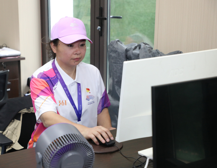 “惊喜”来自52岁的志愿者单晓叶。作为鹿城区摄影家协会理事,单晓叶有着20多年的摄影经验。今年4月,得知温州体育中心体育场需要专人记录亚运会赛事筹备花絮,她毫不犹豫地报名成为一名志愿者,用镜头一一记录大型国际赛事筹备背后的点点滴滴。