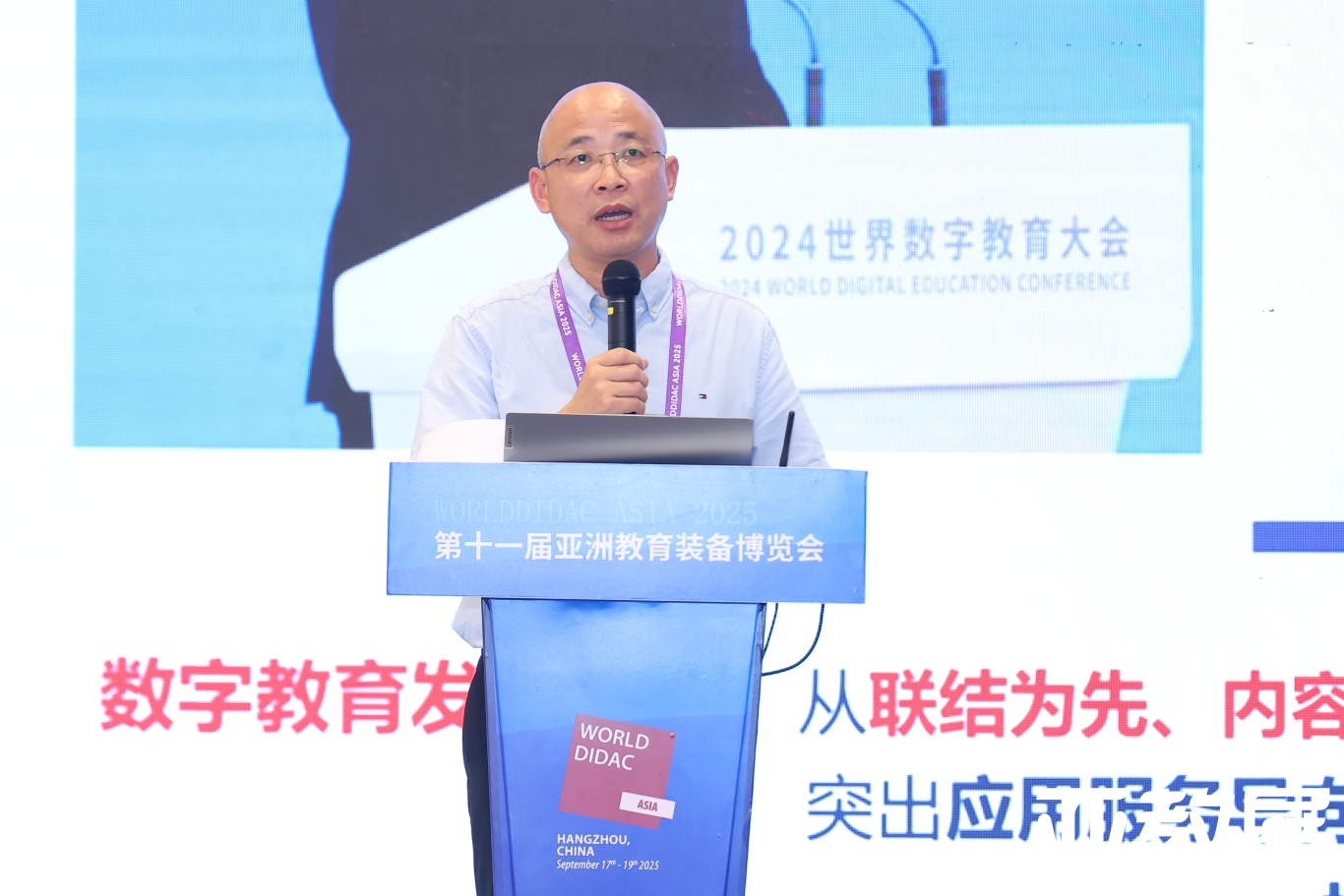 温州市第八高级中学书记、校长钟伟平以《从芯到云:智能芯片实验室×数字作业,打造AI赋能的校本新范式》为题,分享学校如何将人工智能底层技术与日常教学深度融合。该校通过自主研发智能芯片实验室系统与数字作业平台,实现了教学数据的实时采集与智能分析,为校本化AI教育模式树立了典范。