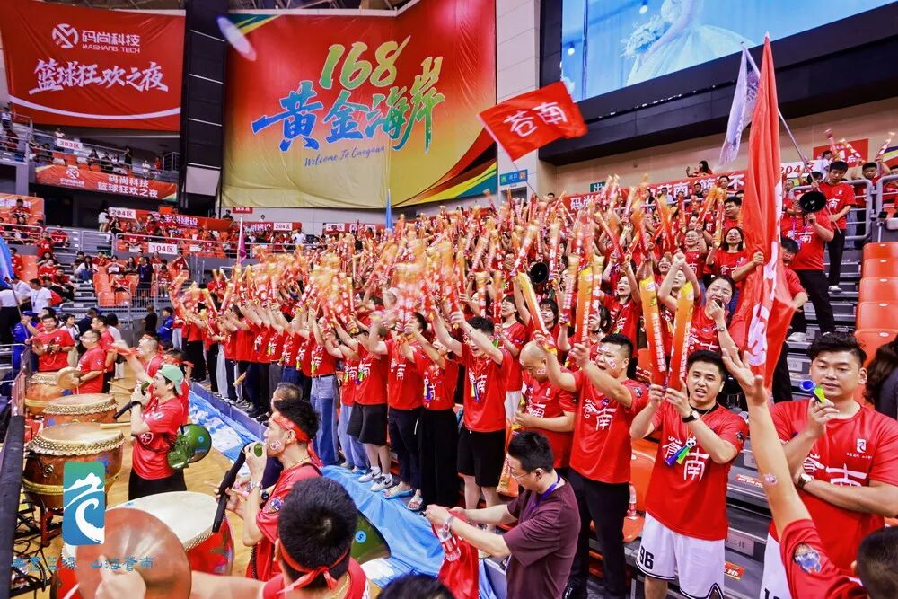 最后一节比赛,台州湾虽奋力追赶,但已无力回天。在全场一阵阵“叫南哥”的呐喊声中,比分最终锁定为77:59!