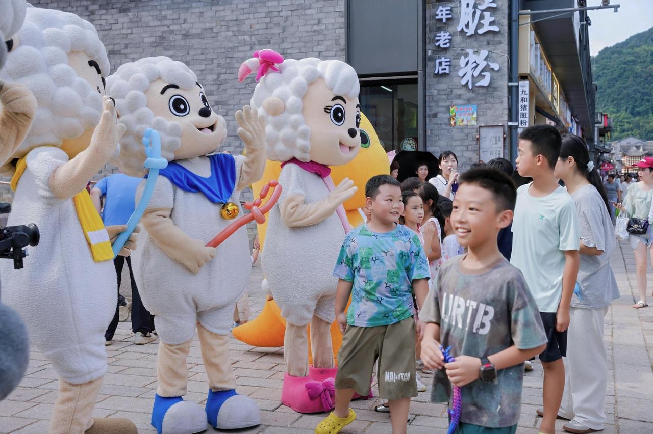 坡南的魅力不止于文化传承,潮流新风同样精彩。青丘BAR的民谣舞台上,专业音乐人带来流行民谣,与湖边草坪构成年轻人的疗愈系音乐空间。文和里则成了孩子们的欢乐天地,喜羊羊与灰太狼、超级飞侠等顶流动漫明星在此集结,一亮相就吸引小朋友围上前拥抱、合影,更有欢乐巡游将现场气氛推向高潮,孩子们追着巡游队伍奔跑欢呼,在古街沉浸式体验动漫世界的奇妙乐趣。