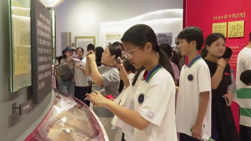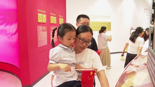 作为集国旗科普、红色教育、特色文化于一体的爱国主义教育综合展示馆,国旗教育馆深度融合国旗元素与瑞安地域文化元素,吸引了大批青年学生群体。他们或三五成群结伴参观,或在家长、老师带领下有序游览,许多身着校服的学生在参观过程中深受震撼。学生舒艺璇说:“往年国庆假期妈妈都是带我出去玩,今年学校组织参观国旗教育馆,让假期更有意义,观旗时特别震撼,今后学习会更加努力,长大后报效祖国。”学生潘柏源自豪地表示:“曾联松爷爷是国旗设计者,馆门口的题字也是他的手迹,我感到特别兴奋,希望用实力报效祖国。”