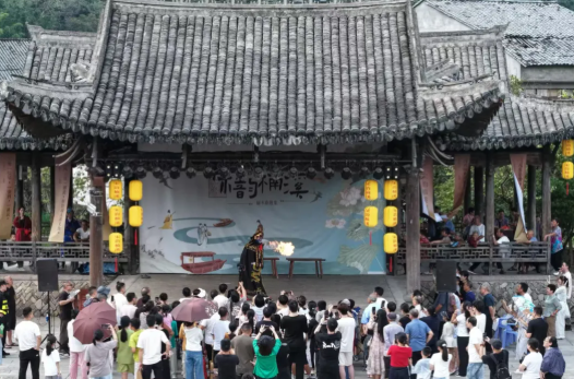 融合创新升级沉浸体验。洞头韭菜岙沙滩结合音乐节、民俗表演与大型烟花秀,打造视听融合的滨海狂欢;乐清中雁灵峰景区以亿年火山为背景,开展越剧快闪演出,实现自然奇观与传统艺术的诗意对话。
