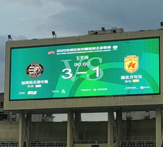 急于保级的湖北青年星马上利用反击扳回一球,但阵容齐整的温州队本场比赛踢出了漂亮的攻势足球。第30分钟,11号吕世豪禁区抽射破门,把比分扩大为3:1。半场四粒进球,让主场球迷大呼过瘾。