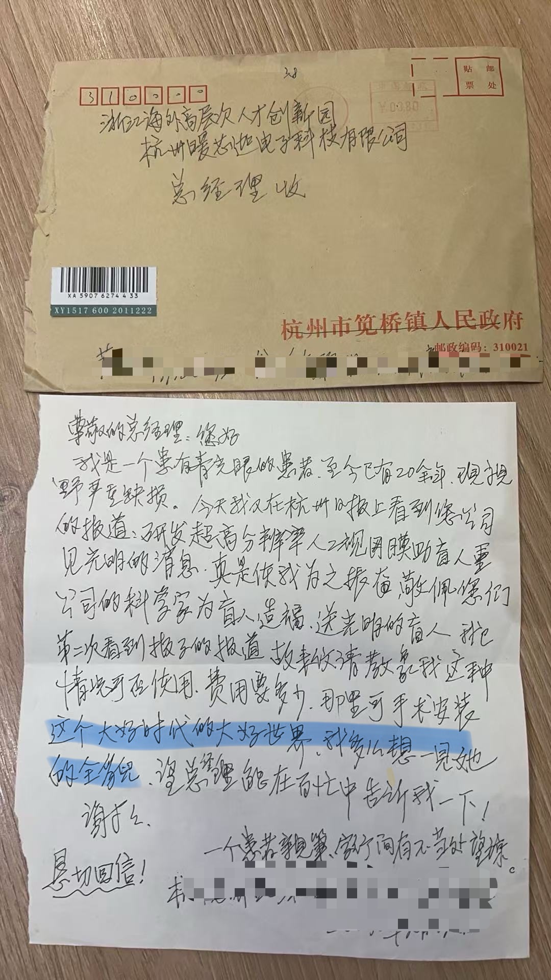 “这个大好时代的大好世界,我多么想见一见她的全貌。”杨佳威和他的团队经常收到视障人士及其亲属的手写来信,其中一封信的结尾这样写道。这封信来自一名青光眼患者,二十多年的黑暗生活中,他早已习惯了模糊残缺的世界,直到在报上看到暖芯迦的报道,心中重新燃起了希望。