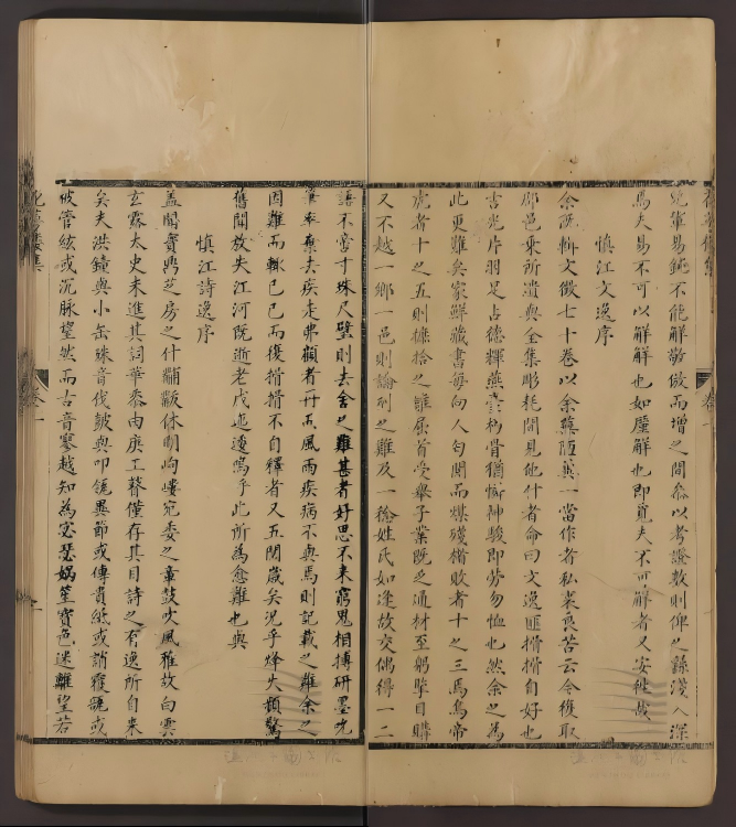 在编纂《二续慎江诗逸》时,他特意把明清易代之际的诗单独编成一集。这些诗里,满是伤今吊古、忧谗畏讥的情绪。他在该书的《自序》中阐明心迹:“诗以著代也,代著而其人之诗见焉……而伤今吊古之吟,忧谗畏讥之什,视沦草莽槁泉石者不啻过之。”他借“白马宾王”“故宫禾黍”之典,感慨“云霞郁思,山川洒泣,人所应尔,我亦同然”。