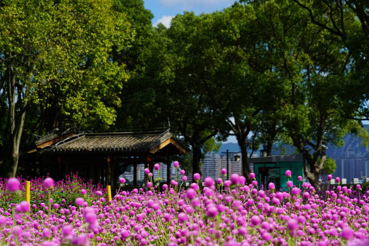 原标题:江心屿秋日赏花正当时,粉紫花海邂逅宋韵风雅