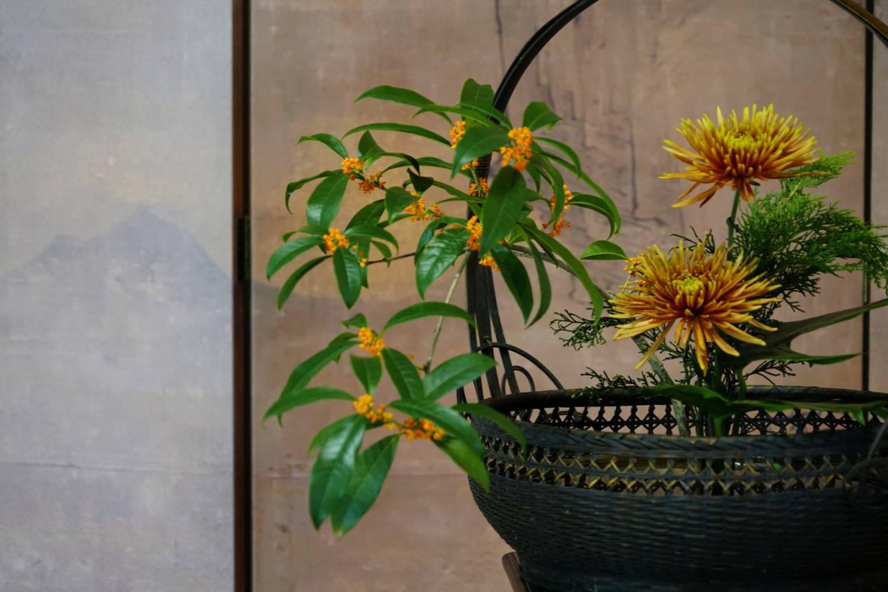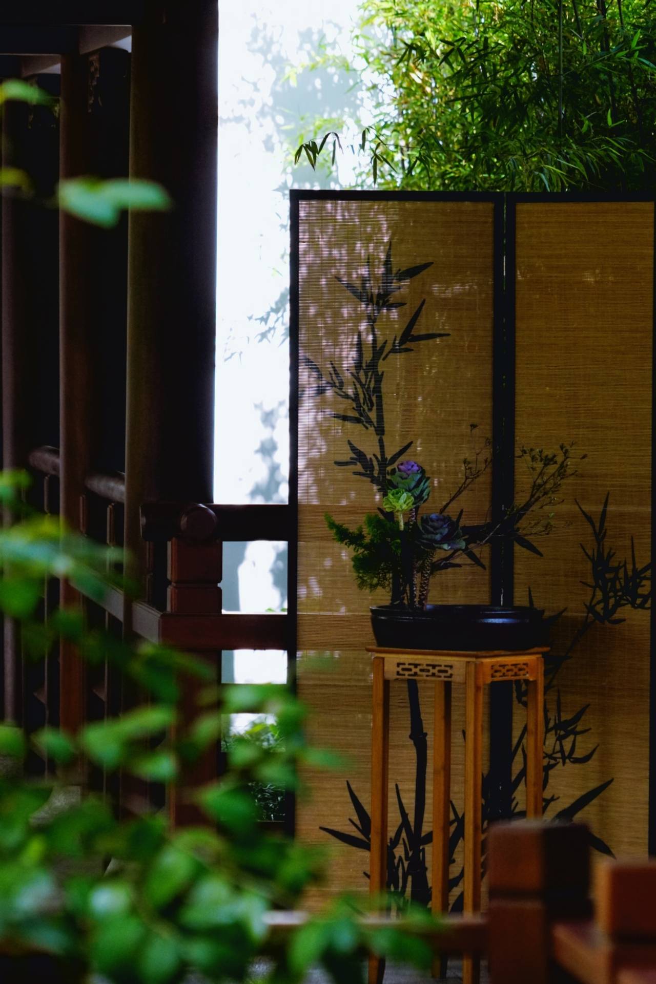 “紫色、橙色的花朵点亮了秋景,非常浪漫优雅。阳光洒在草地上,闻着桂花香,穿梭在宅院里观赏插花作品,这种古今同游的感受非常独特。”市民叶女士分享道。