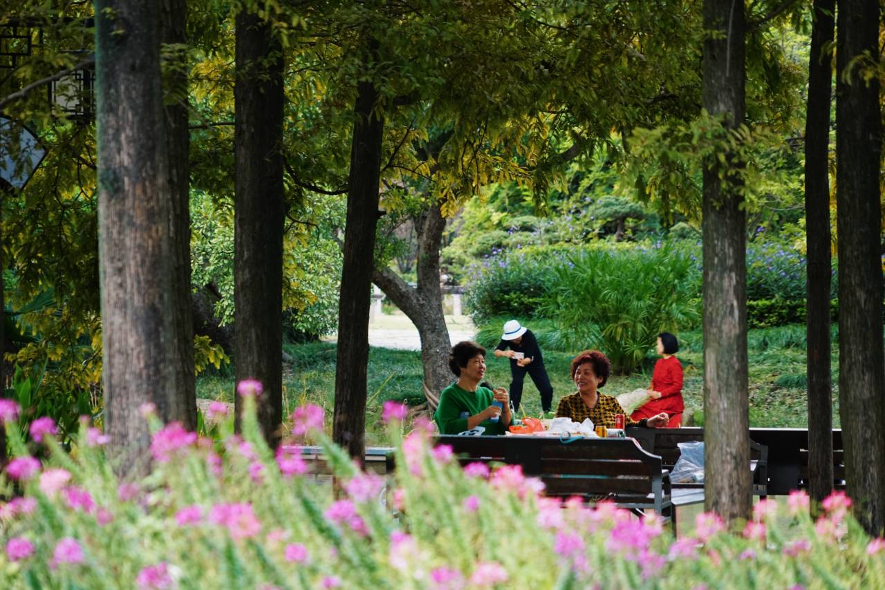 本届花展设有3大核心展区:在棕榈大草坪,2000平方米的千日红开得正艳,粉紫色的花球连绵成片,宛如铺展的绒毯,这片首次在温州大面积种植的花海,已成为游客们最喜爱的打卡地点;阳光大草坪,2500平方米的醉蝶花正值盛放期,紫、粉、白三色的花朵在微风中轻轻摇曳,仿佛无数彩蝶在花间嬉戏;盆景园里,从经典的独本菊到繁茂的球菊,3300多盆菊花争相开放,与园内的假山、小径相映成趣,构成了一幅生动的秋日画卷。