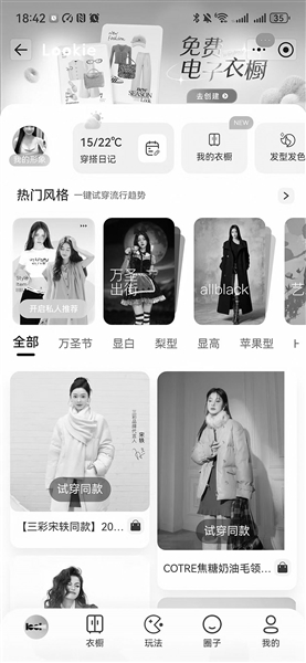 如今,她只需在淘宝的频道里搜索“lookie”或“试衣” 就可以进入小程序,上传一张全身照,系统便生成高度还原其身材比例的虚拟形象,选择程序里的服饰即可“试穿”。“3分钟试完8件风衣,办公室通勤风、周末休闲风一键切换,连我溜肩的小细节都考虑进去了——比很多实体店导购还懂我。”最终收到的外套合身又满意,让她彻底爱上了这种购物方式。